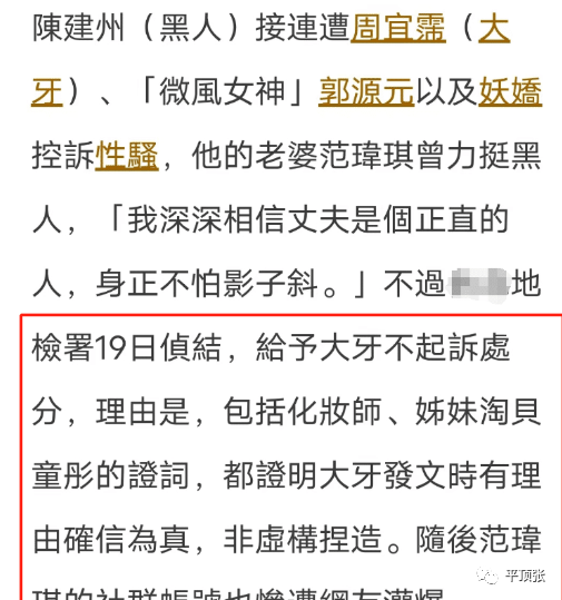 陈建州面临女星大牙的骚扰指控,法院决定不起诉,随后范玮琪的社交媒体评论区遭受满堂尽是谤言。