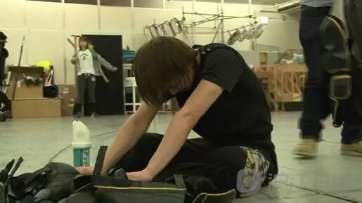 堂本光一:上升了然后要干什么(笑)。(慢慢升高)总觉得有很多不喜欢的记忆......(笑)。恩~(滚楼梯)真是不得了的事情啊。这场戏当然是演技,剧中剧,可以说是超越了演戏的表演,要和对手正面迎战的。我比较不擅长武打戏,所以要表现好这部分真的不容易。