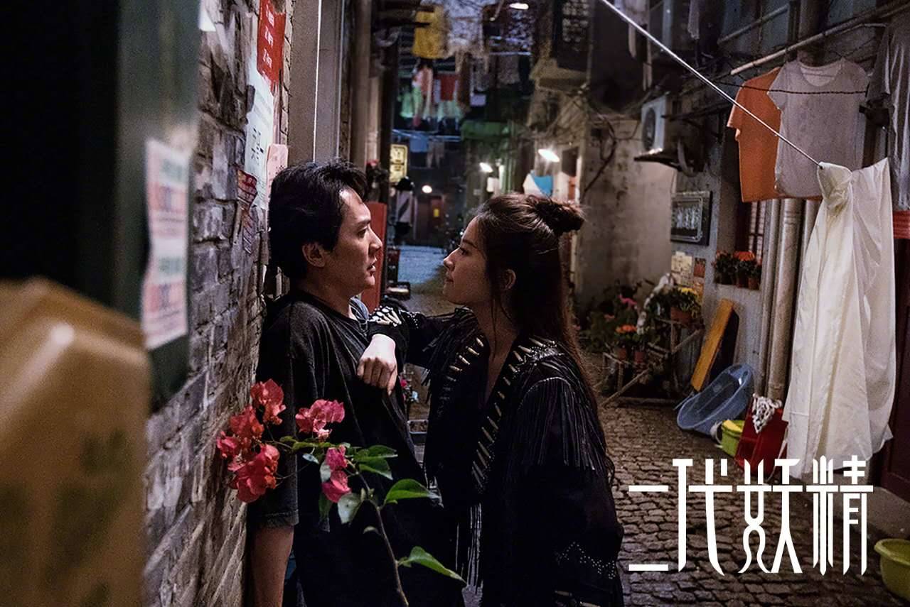 一同发布的定档海报中,一只巨大狐妖在楼群中露出头部,窥伺前方。冯绍峰则身上缠绕着各种彩灯,赤脚在弄堂里狂奔,十分慌乱。