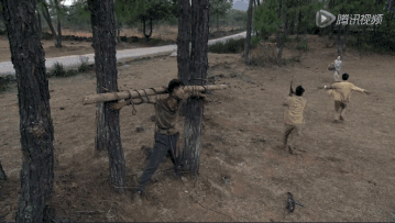 孟凡了因为当逃兵,被五花大绑捆柱子上,手不能动,但还不忘调侃着自己旁边的兄弟。