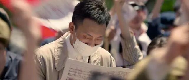 《我和我的祖国》中,胜利的喜报在街上沸腾,他在准备拉开口罩的那一刻,突然被撞了一个趔趄。