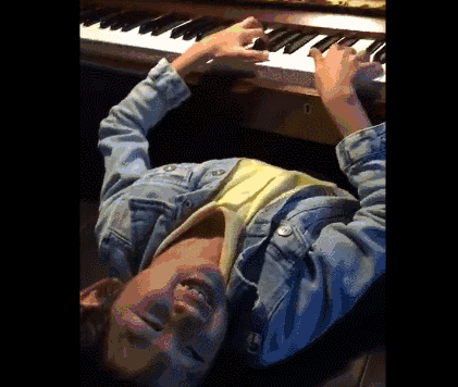 还练就了“蒙眼弹钢琴”的技能↓