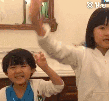 姐妹俩的性格也挺像,尤其是这种执着于制造表情包的精神↓