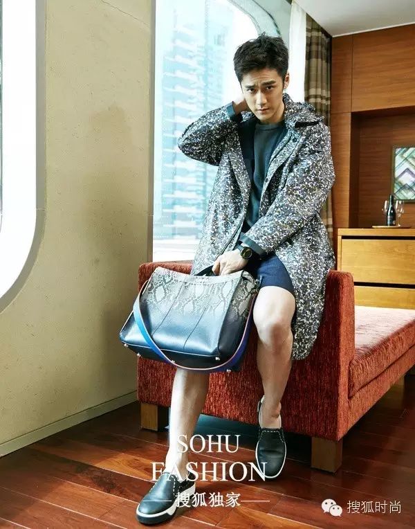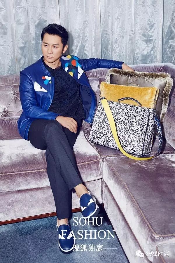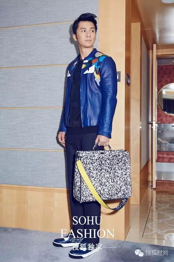 蒋劲夫深色搭配毫不沉闷,反而更显品质。更为可贵的是,他为包带注入了满满的青春活力,经典红蓝撞色包带与他相互辉映,极具皇室风格。