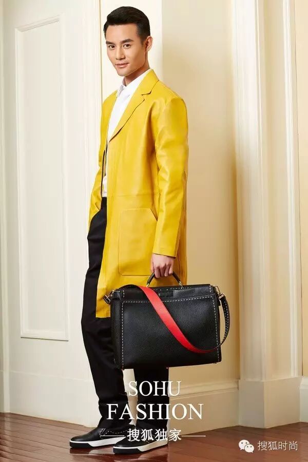 王凯穿着黄色风衣,极具绅士风度。两款小牛皮包带尽显Fendi至臻工艺,使用大胆撞色设计,抓住眼球的同时,高级质感呼之欲出。