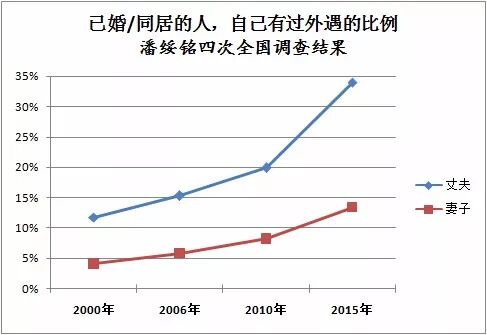 到2015年,大约每3个丈夫和每7.5个妻子中,就有一个曾出轨。