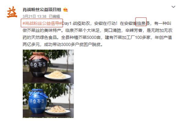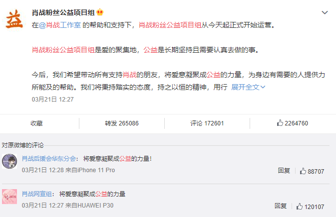 还记得上个月,一个叫“肖战粉丝项目公益组”的微博正式营业,当时的第一条微博是这样的: