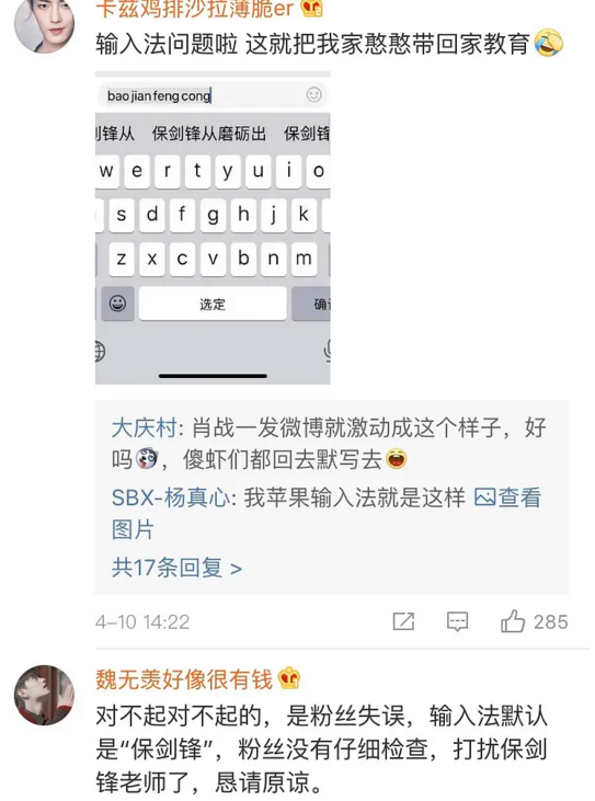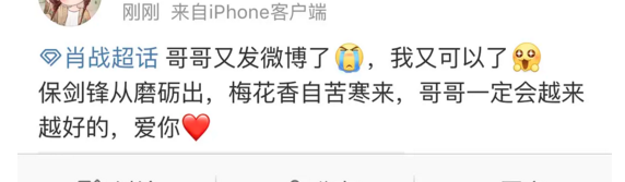本来粉丝是想表达自己家哥哥经历风雪,重新归来,结果在微博里配文写道:保剑锋从磨砺出,梅花香自苦寒来。