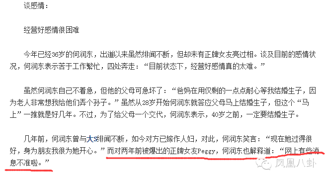 2011年,被记者问到被爆出的正牌女友Peggy,何润东也解释道:“网上有些消息不准啦。”
