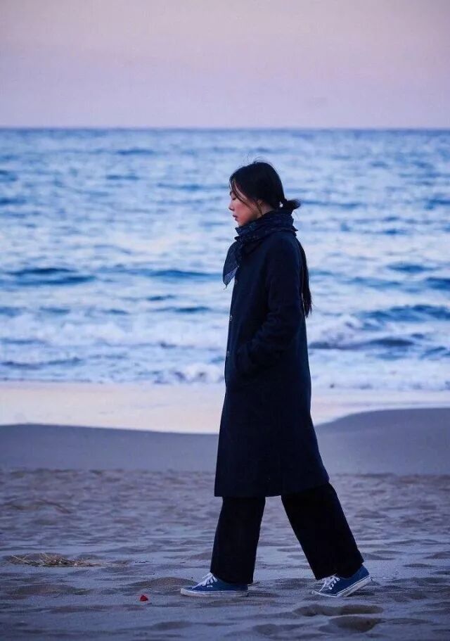 《独自在夜晚的海边》