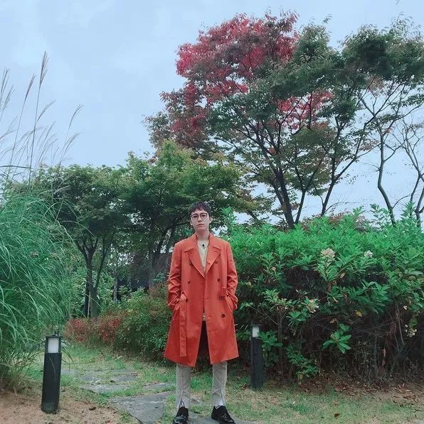 李洪基在10日通过个人Instagram上传了“#秋日男生”这些文字和一张照片。照片中李洪基戴着眼镜穿着橘黄色的长风衣。