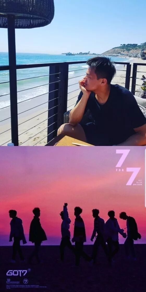 照片中是10日发售的GOT7新专辑《7for7》海报照片。GOT7继今年3月发表了迷你专辑《FLIGHT LOG:ARRIVAL》后时隔7个月发表迷你专辑,主打歌为《YOU ARE》。