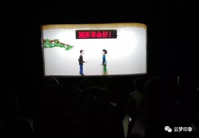 2018年11月27日晚,云梦县伍洛镇十月村,乡亲们正在观看新编皮影戏《厕所革命好》。当天,中央新闻纪录电影制片厂摄制组人员,在演出现场采访拍摄了云梦厕所革命皮影戏以及十月村厕改情况。