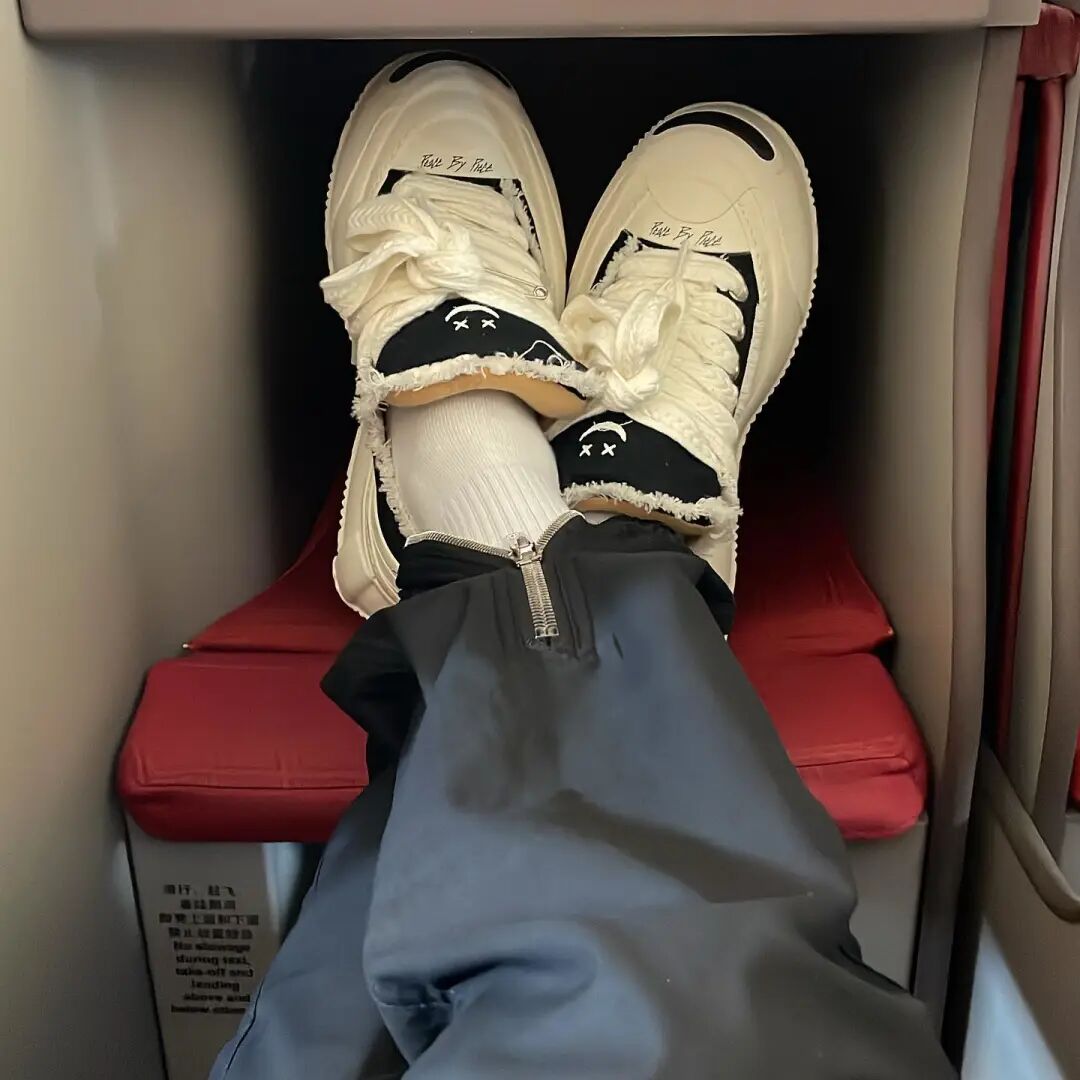 除此之外,在球鞋上脚方面,苏有朋也相当硬核:OFF-WHITE x Nike、禁止转卖 Air Jordan 1、Yeezy Boost 700 等。