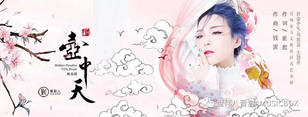 而配合这个展览,曲作家钱雷和词作家崔恕联手打造了一首同名歌曲《新壶中天》,作为此次“新壶中天·桃源篇”艺术展的主题曲,由主题曲女王崔子格来演唱,用精准明晰的文字描述与引人入胜的声线气韵,成为初次进入现实世界与平行空间交接点的人们的一个声音向导。