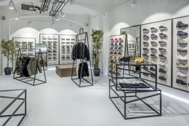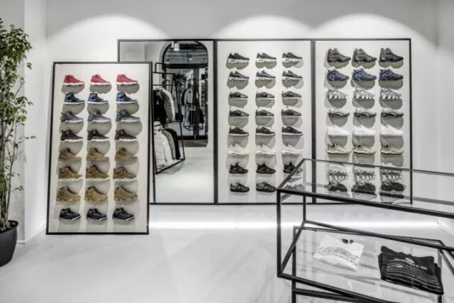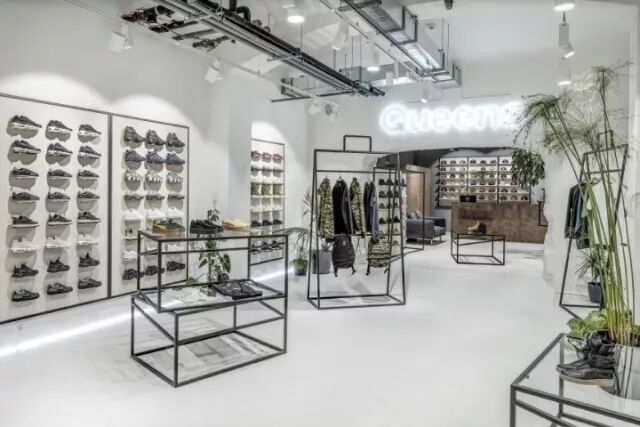 他们创造出轻巧,空间宽敞,工业化程度高,功能齐全的场所,客户感觉良好。他们只使用优质材料,并添加了一些签名件:纸牌服装看起来像超大的购物袋和鞋盒形式的桌子。这家商店还有技术上的装备来举办各种活动(弹出式销售,发行,音乐会)。