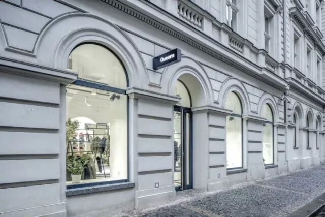 Queens 旗舰店面积超过200平方米。有6扇窗户提供了良好的广告机会,室内由着名的捷克设计师 Lenka Damová 和Boris Klimek 设计。