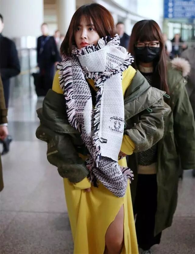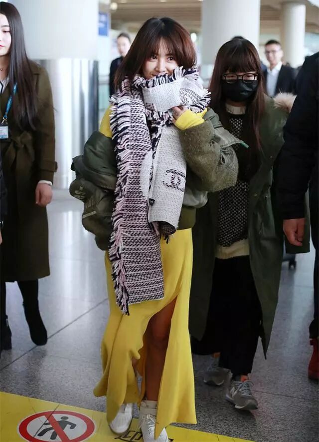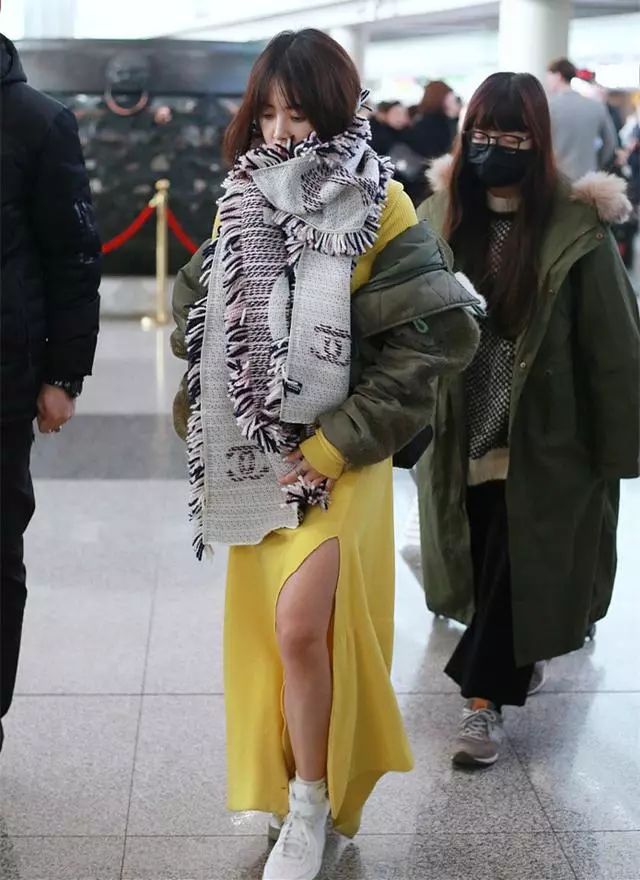 只看上衣还感觉裹得挺严实的,挺暖和,但视线下移,只见蔡依林黄色开叉裙下是赤裸裸的大腿,真是太勇敢了,小编自叹不如啊!