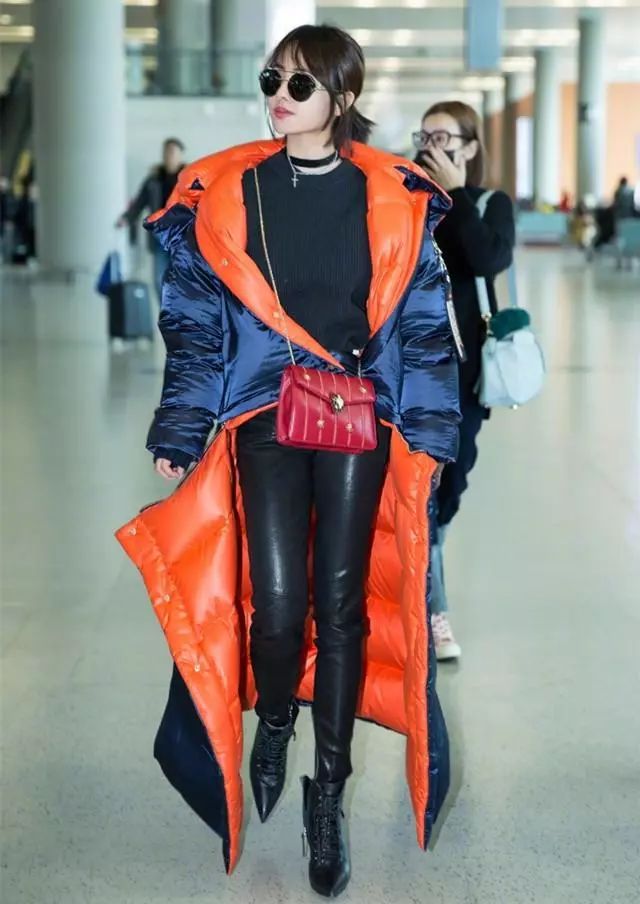 蔡依林现身某机场,黑超遮目十分帅气,身穿一件蓝色羽绒服,前短后长,十分新颖,下搭一条黑色皮裤,脚踩一双黑色尖头短靴,一身打扮十分炫酷时尚。