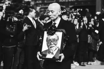 (葛存壮告别仪式结束,葛优抱着遗像护送父亲上车)