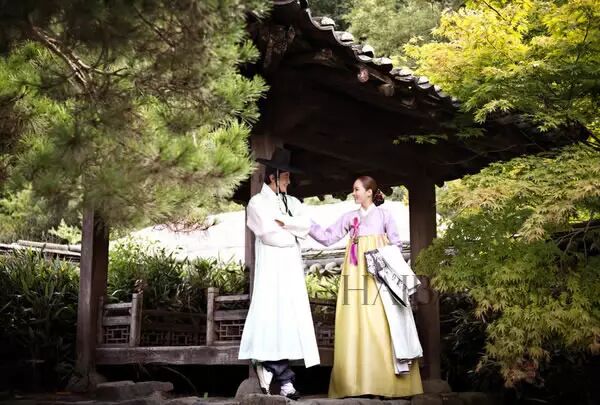 在之前海报编编曾经曝光过人气男星高梓淇求婚蔡琳,并且两人拍摄的婚纱照,高梓淇又在微博上曝光了一组与未婚妻蔡琳的韩式婚纱照,古典韵味唯美十足,身着赤古里裙、发挽花冠的蔡琳温婉美丽,都带纱帽、韩服加身的高梓淇则儒雅英俊,一对璧人举手投足之间皆是甜蜜,引来了众多网友的围观赞叹。