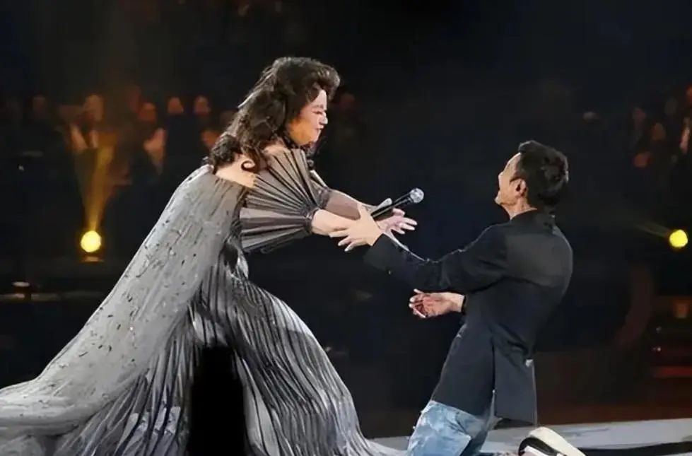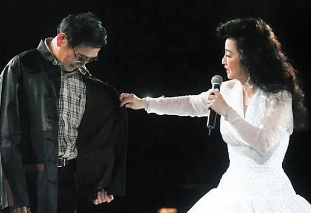 在演唱会现场,刘德华,周润发为她下跪,表示敬意。