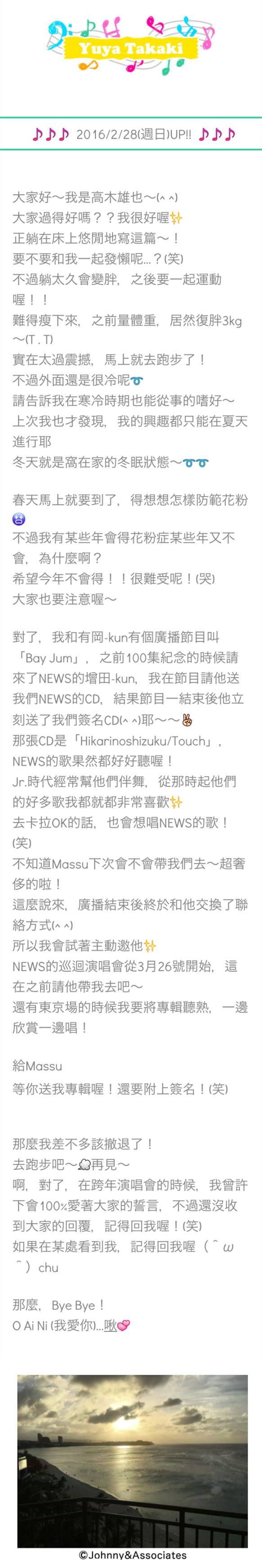 Masu前辈的确很好也很温柔呢。NEWS的歌小编也很喜欢呢~有兴趣的宝宝们也可自行搜索收听O(∩_∩)O~