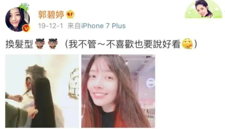 果然没多久,郭碧婷就把发型和发色都默默换成婆婆喜欢的“黑长直”了。