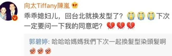 向太却不太满意这个发型,还在留言下面回复:“下次换发型一定要问一下我的同意。”