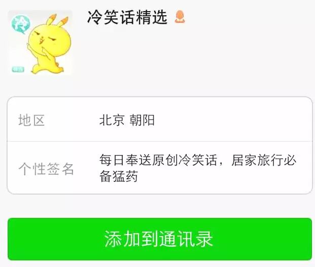 微信号:qupian(←长按复制)这里的冷笑话绝对笑到你肚子疼!