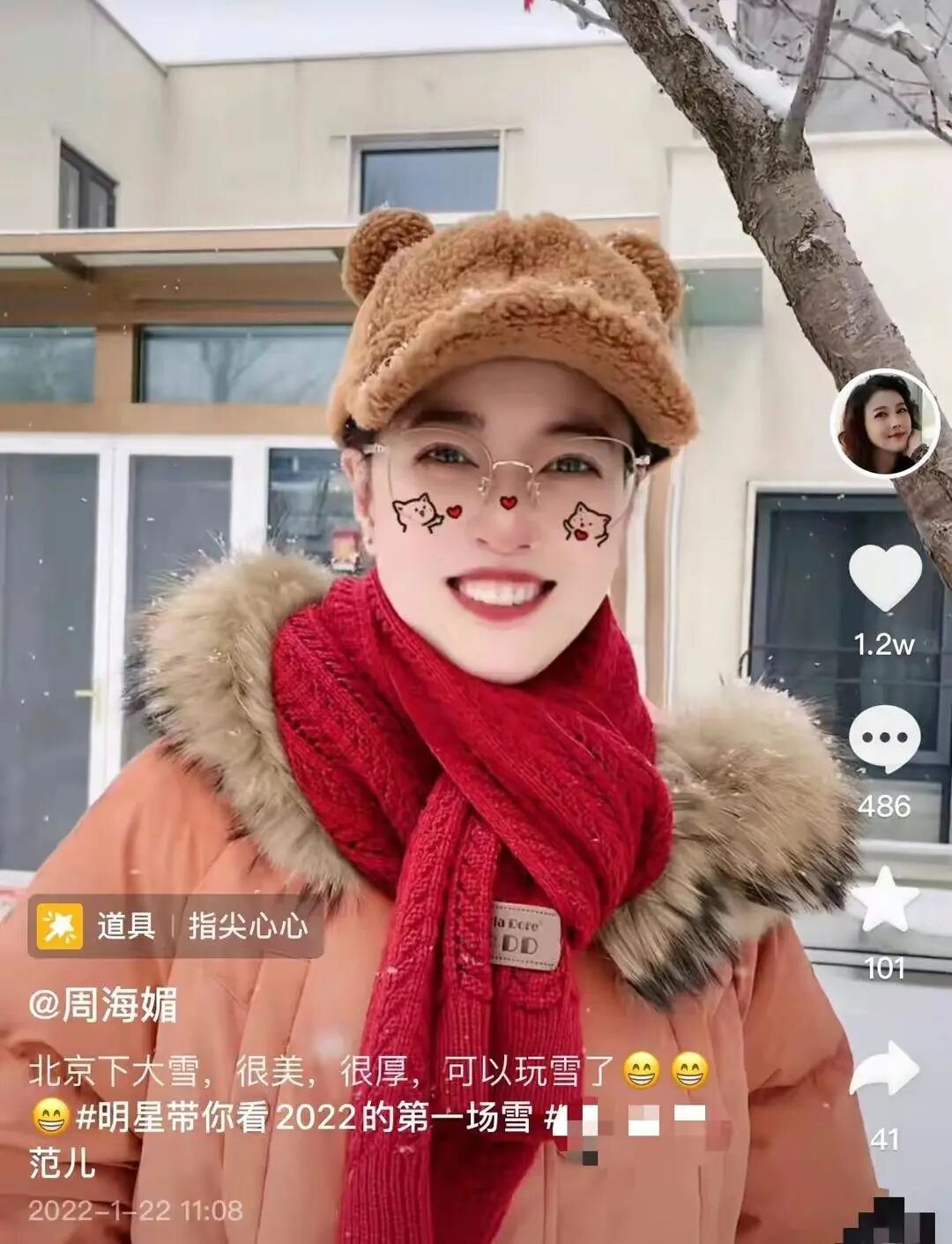 这次她是在拍视频,可以看到北方在下雪,而且是所处的位置是在北京,整个人笑得特别的开心,并且把自己包裹的也是特别的严实,身上穿了一件羽绒服,而且戴着一条红色的围巾,显得肤色比较白
