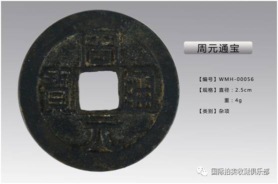 “周元通宝”钱通体黝黑,包浆浑厚,制作精良,铸造工整精湛,钱文深峻刚劲,书韵十足,刀工娴熟,内外廓规整分明,极为精美,不愧为五代钱币之冠。“周元通宝”始铸于周世宗柴荣显德二年(公元955年),是五代时期铸行最多、质量最好的铜钱。