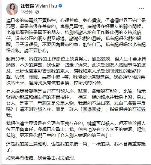 徐若瑄:这是我的第三篇声明,也是我最后一篇,一样的话我不会再重复说。