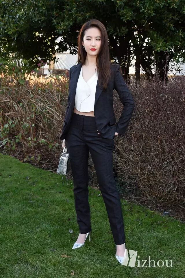 走干练风格的刘亦菲穿起西服套装比前些日子为了新剧宣传所穿的白色衬衣好看多了。