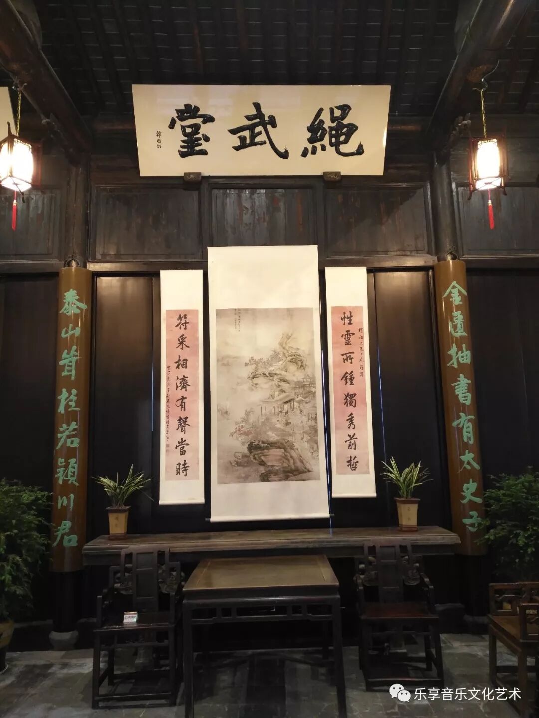 “绳武堂”正厅正面屏风上挂着一幅画,两侧配有对联: “性灵所钟独秀前哲;符采相济有声当时。”
