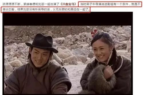 刘芸还跟聂远有过一段情缘,当时《汗血宝马》导演吴子牛说进剧组有一个条件,就是不准谈恋爱,但刘芸没有听导演的话,义无反顾跟聂远在一起了!