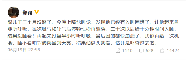 6月20日,有郑钧粉丝说让嫂子(刘芸)别出去丢人了,“快给她整回来吧,看别人骂她我都替你难受”。郑钧看后回复道:“谢谢朋友,虽然你的难过我也体会不到。我的看法是每个人都得为自己的言行承受后果。善良就是尽量不要用怨恨的情绪去伤害别人和自己。”