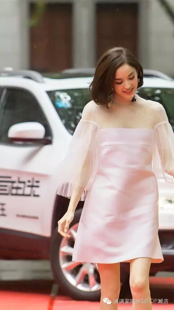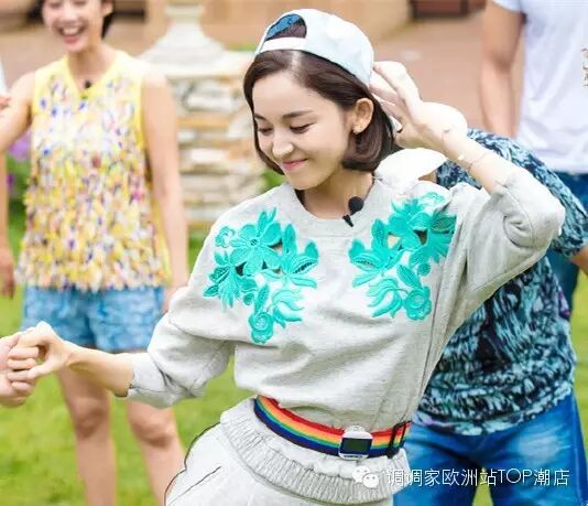 娜扎的连衣裙腰部起印有绿粉色印花,裙摆别出心裁的依据花瓣走势裁剪,活泼精妙,别出新意。爽妹子一身清新干练,只是略显但单板,青春的气息可不要被遮掩啊。
