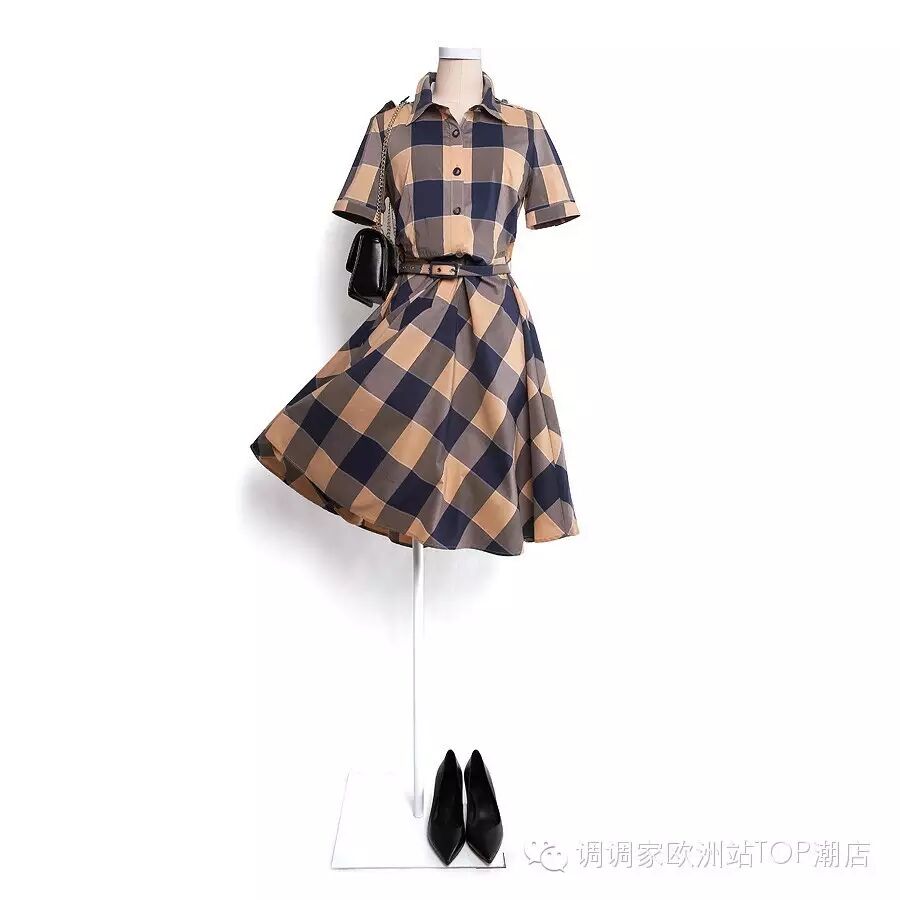 清新的蓝白格,斜肩带、下摆裁剪都是亮点,非常有设计感。