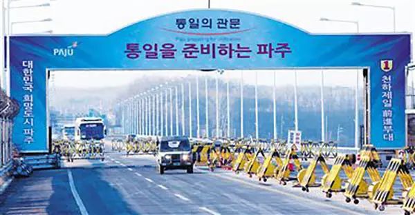 △ 资料图:2016年2月10日,在韩国坡州,离开开城工业园区的车辆在统一大桥上行驶。