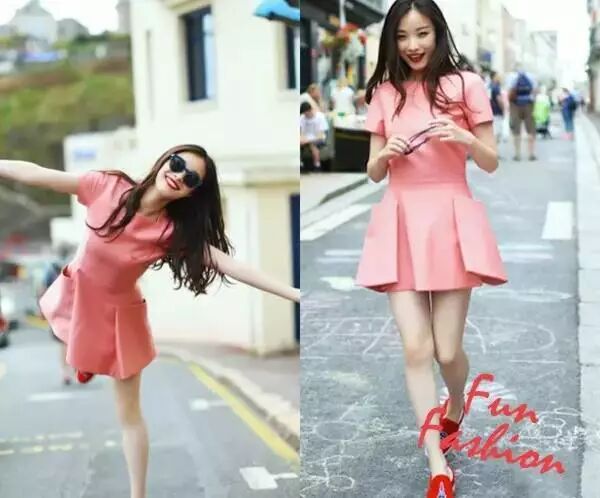 粉色连衣裙她穿起来甜美俏皮,展现少女般的灵动活力,脚上的红色休闲鞋也配的如此完美。