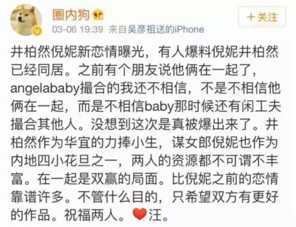 倪妮不得不说是个好姑娘,上一段恋情分手时候没有各种狗血撕逼,而是好聚好散,一条微博足以见得这姑娘是个好性格!