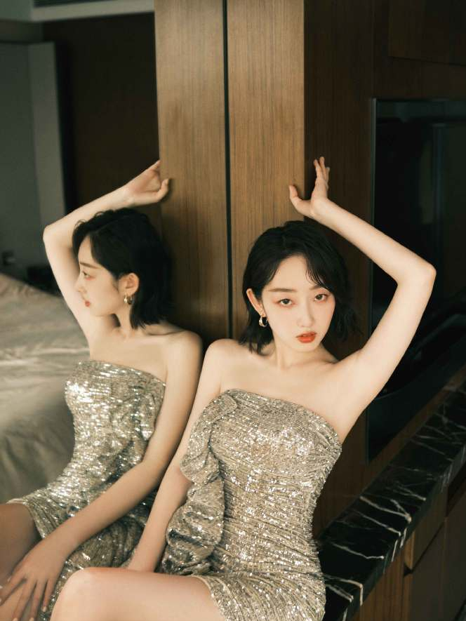 蒋梦婕沿着星星的轨迹凸显身材曲线,光影朦胧之间尽显清冷魅力。清爽的短发搭配闪耀鳞片,有少女的清新也有复古味道。