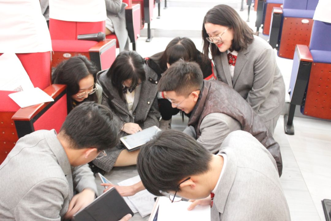 当日上午,ASDAN商赛的负责老师为高中部的学子们介绍了比赛的日程,还组织学生们进行了一场测试轮。各小组迅速扫码入局,开始分工合作。