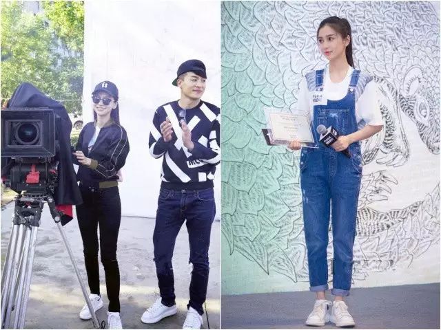 女明星们也不甘示弱,Angelababy用这双鞋搭配背带裤和bomber jacket,青春活力十足。站在她旁边的孙艺洲好像也穿着同款情侣鞋呦~不知道黄教主会不会吃醋呐~