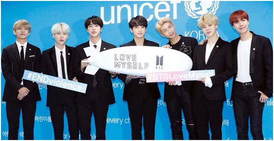 不仅在音乐创作中如此,在社会公益方面也是如此,2014年,尚未走红的“防弹少年团”就捐了10万美元给“世越号”沉船受难者家属。团员闵玧其在其生日时,购买了昂贵的韩牛送给韩国39家孤儿院的孩子。他们还与联合国儿童基金会(UNICEF)一起发起名为“爱我自己”的反暴力行动,筹集的善款已经超过100万美元。