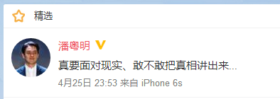 潘粤明昨天半夜发了一条微博引发了大家的热议。