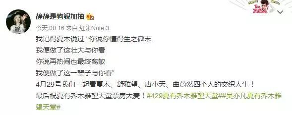 韩庚吴亦凡成了情敌?我错过了什么?? 内地男星 2016-04-13 12:01:55 102 创作不易,用心坚持,欢迎请BaGua喝几杯爱心咖啡!打赏并支持本文 打赏并删除本文 点击上方“微电影平台”可以订阅哦 年少时,你是他的依靠,长大后,他是你的乔木。 夏木在遇到舒雅望之前,也许不会想到他单调压抑的世界,有一天会因为这么一个人的闯入,而从此充满跌宕。 根据籽月同名小说《夏有乔木,雅望天堂》改编的虐心电影,本月29号,将正式上映。俊美男神吴亦凡本次饰演冷峻少年夏木,而夏木心中最重要的人,在他成长过程中留下浓重色彩的舒雅望,将由“靖王妃”卢杉扮演。先看看已曝光的两款海报: 电影讲述吴亦凡饰演的夏木,因父母相继去世而从小内心封闭,比他大六岁的开朗女孩舒雅望(卢杉饰)用温暖渐渐融化了夏木的内心。 夏木对雅望产生了青涩美好的感情,无奈雅望拥有着青梅竹马的恋人唐小天(韩庚饰)。 最终一切都被突然闯入的富家子曲蔚然(周元饰)打乱,令这场青春在永恒的缺憾与伤痛中落下帷幕。 对很多人来说,《夏有乔木,雅望天堂》是一个关于青春的记忆,当时年少的我们,在书中认识了这么一个让人心疼的少年,他的感情,他的悲伤,牵动着你我的心,如今我们已经褪去当年的青涩了,而那份感情却始终萦绕在心里······ 也许,你也曾认识那么一个干净的少年;也许,你也曾有过一段难宣于口的恋慕;也许,你也曾为所爱之人脚踩钢索······ 故事,永远藏在人心里·············最后奉上一波吴亦凡唯美剧照4月29号,《夏有乔木,雅望天堂》全国上映你不来我不老 创作不易,用心坚持,欢迎请BaGua喝几杯爱心咖啡!打赏并支持本文 打赏并删除本文 感谢您的支持鼓励,我会继续努力的!文章地址:用户邮箱:打赏金额:USDT 请输入数字点击”去打赏“,即可进行打赏支持本文章哦 吴亦凡 发表评论