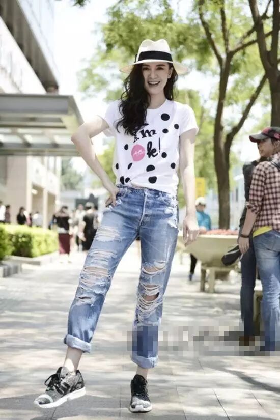 小宋佳好像天生就是一个衣服架子,任什么风格的衣服在他身上都会与她融为一体,运动鞋的搭配堪称完美。