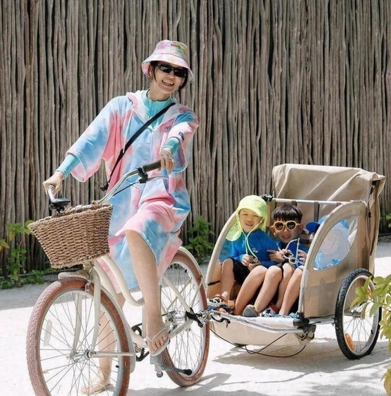 而今天,同样是度假,同样是“被拍”,她却能坦荡地站在阳光里,身后是丈夫坚实的胸膛和孩子们无忧的笑脸。